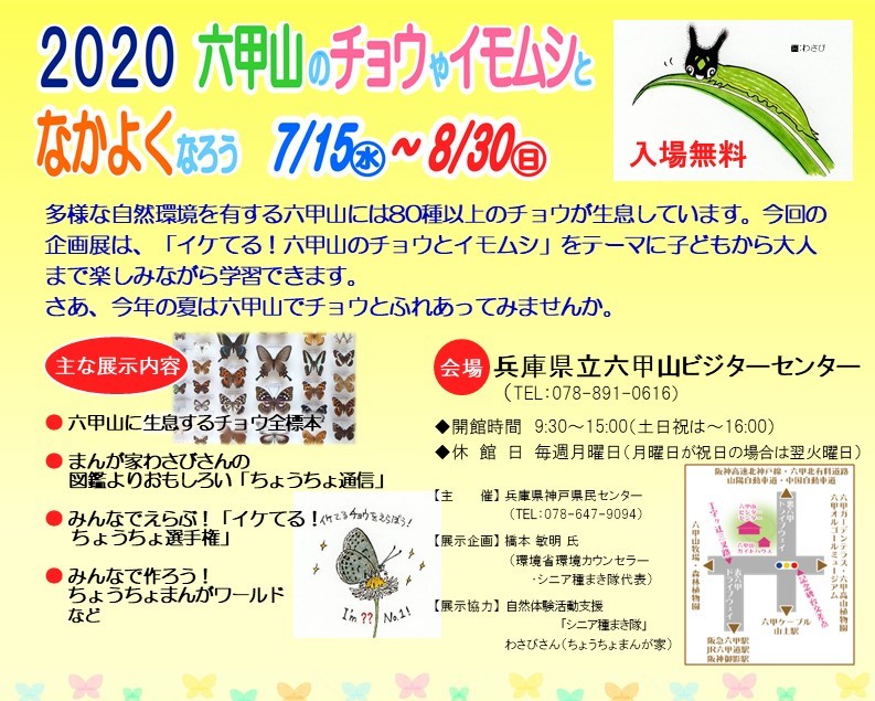 今年の夏は六甲山ビジターセンターでチョウとふれあってください。