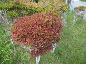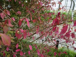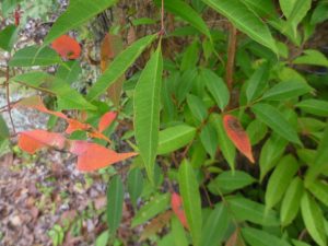 紅葉はまだ先ですが、ハゼノキ・ツタウルシ、ガイドハウス前のニシキギ・ドウダンツツジは少し赤く色づいています。