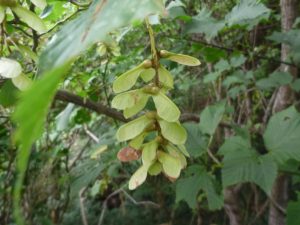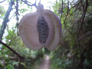 色々な果実も観られました。六甲山に多いタンナサワフタギ、種がアンモナイトの形をしたアオツヅラフジ、ウリハダカエデもいっぱい種を付けています。美味しそうなアケビの実も見つけました。