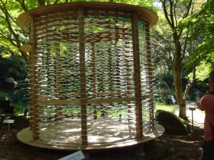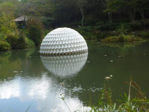 神戸六甲ミーツアートの作品もあり、歩いているとアサギマダラがフジバカマの花に止まって蜜を吸っていました。アサギマダラはフジバカマやヒヨドリバナの蜜を好んで吸います。これらの花には雄が性フェロモンを作るのに必要な物質が含まれているからです。