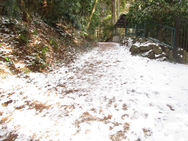 六甲山は低山ですが街中よりも気温が5度くらい低いので、寒波が来ると冠雪します。朝晩は気温が氷点下に下がるので、日陰では積雪が融けずに残ります。特にタイヤや靴底で踏み固まった雪は凍結してスリップしやすいので要注意です。冬の六甲山を歩くには、このような気象条件をわきまえながら、雪道に適した靴の着用や防寒対策など準備を怠らないようにして下さい。