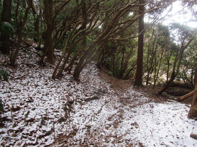 1年で寒さが一番厳しい季節です。1月末にやってきた寒波はひと段落したので今日は穏やかです。六甲山上はどうでしょうか。ケーブル山上駅へとバスで登っていく道中には積雪はありません。ケーブル山上駅からゴルフ場への道を歩いていくと、針葉樹の木立の中では陽当たりが悪いので積雪が残っていました。全山縦走路にも所々で雪が残っています。