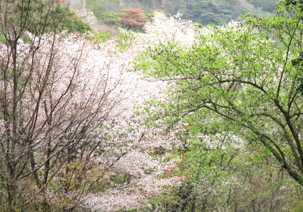山を見上げると、まさに「山笑う」という表現がぴったりの様相です。