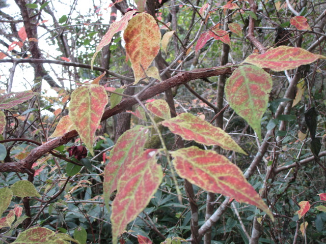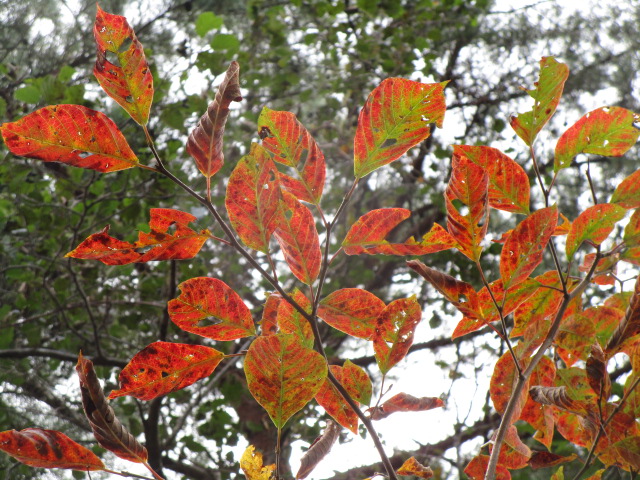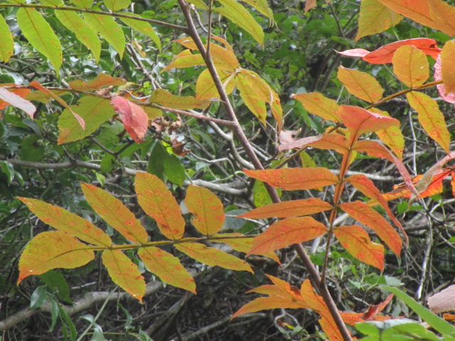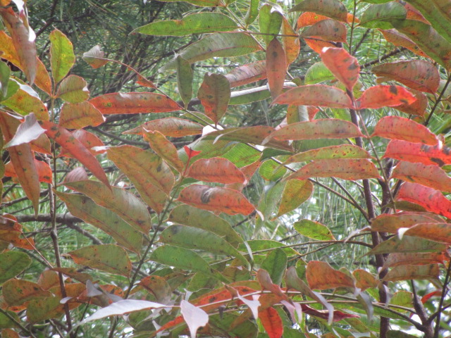 ウルシの仲間も鮮やかに紅葉します。ハゼノキ、ヌルデは色づき始めています。