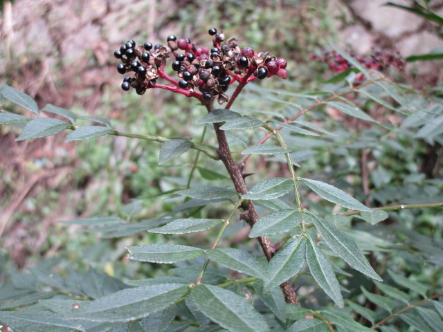 イヌザンショウはサンゴのように赤い果柄を伸ばして実をつけます。