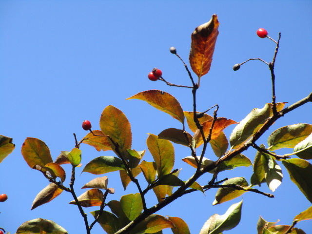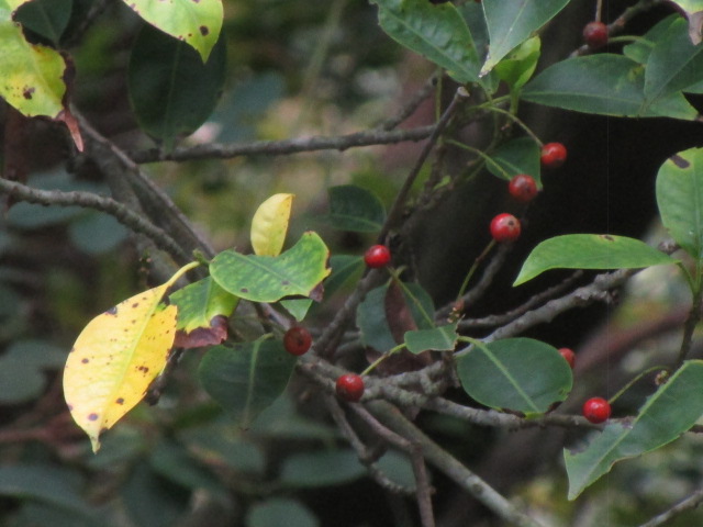 こんな木も色づいています。ソヨゴです。常緑樹ですが秋から冬に黄色くなって落ちる葉が目立ちます。