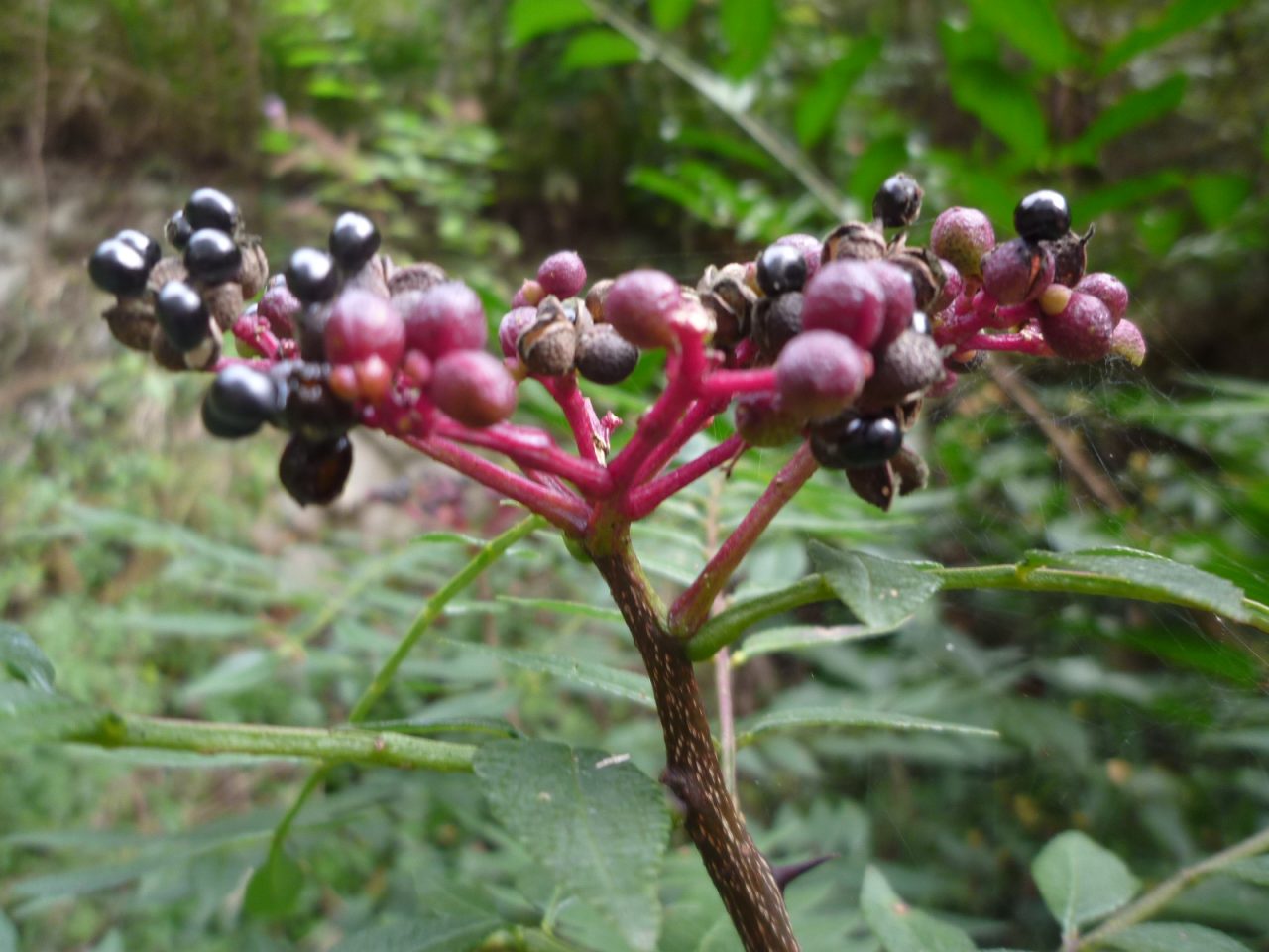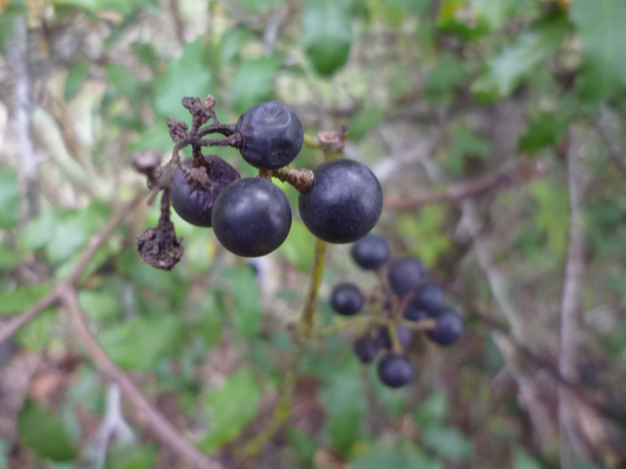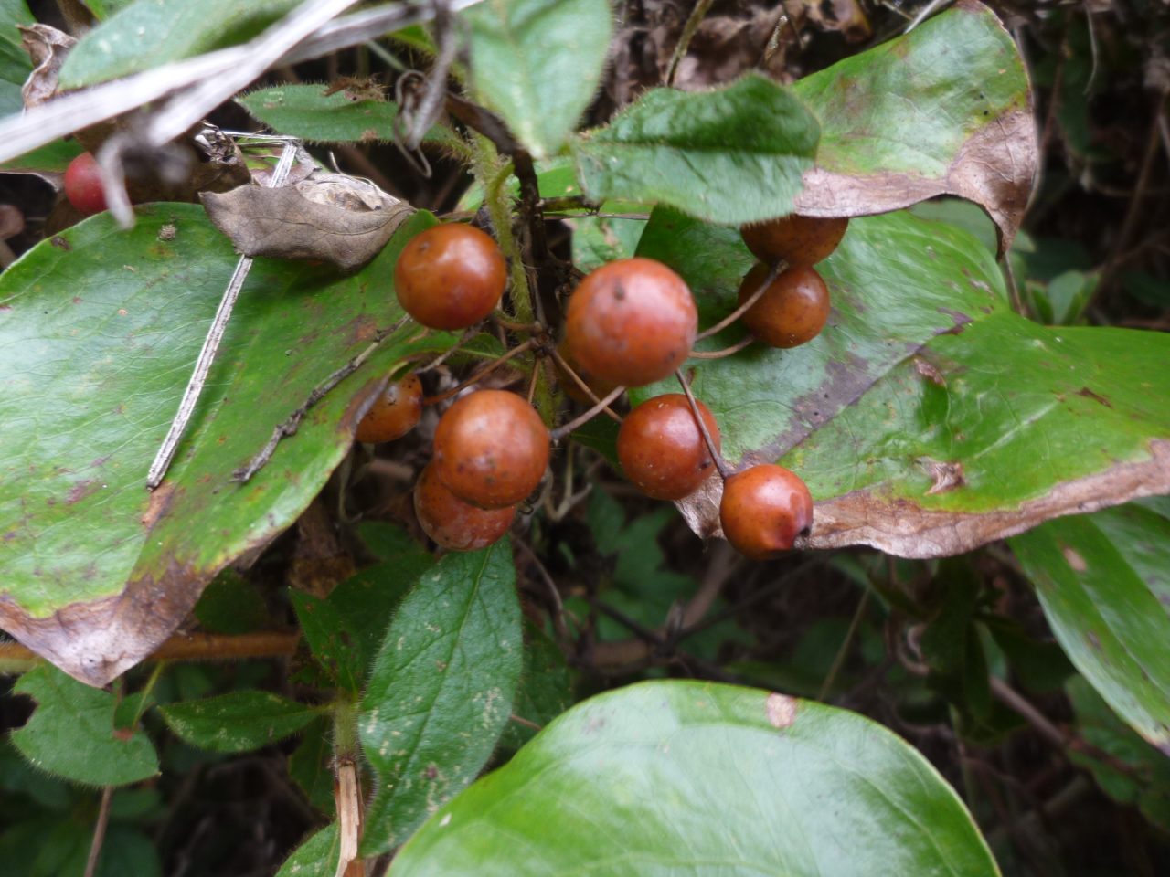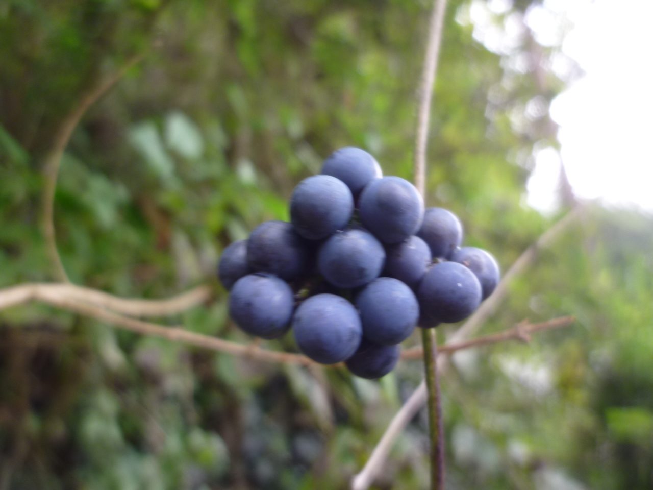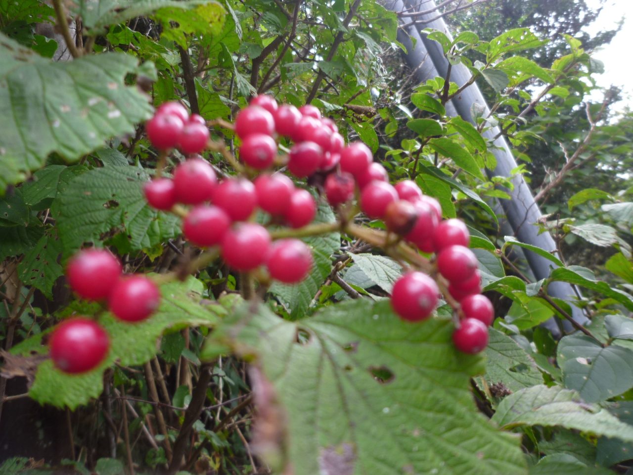 紫色の可愛いノササゲの実、濃い藍色のアオツヅラフジの実(中に入っている種はアンモナイトのような形)、黒いイヌザンショウ・サンカクヅルの実(美味しい)、赤いサルトリイバラ・コマユミ、ガマズミの実などいっぱい観られました。