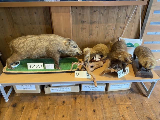 Did you know that wild boar, foxes, and raccoon dogs roam the forests of Rokkosan? Inside the Guide House and Visitor Center, you’ll find impressive displays of real specimens — including inoshishi (wild boar), kitsune (fox), anaguma (badger), and the adorable ten (Japanese marten). These animals represent just a fraction of the 23+ mammal species known to live in the Rokko mountain range.